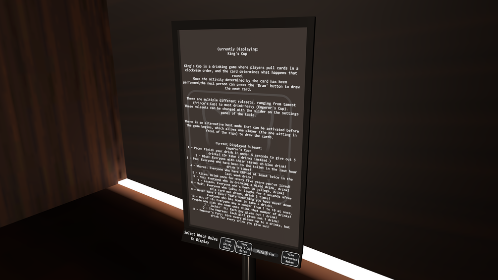 - A 'Host Mode' for King's Cup where a single 'host' player controls when the next card is drawn.